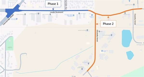 Pour achever les améliorations d'infrastructure prévues dans la zone d'emploi stratégique Lasalle/Elisabella, le projet se déroulera en deux phases :