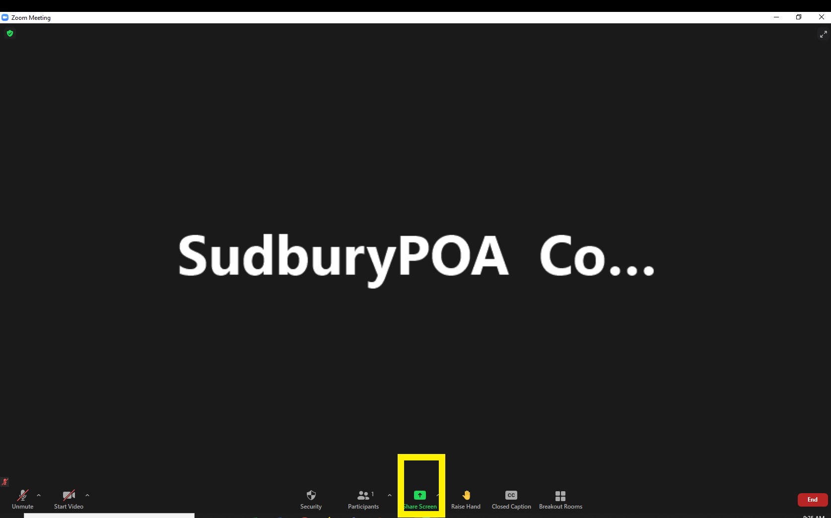 Lorsque le moment sera venu pour vous de partager votre document, vous devez cliquer sur l’icône «Share Screen» (partage de pages-écrans) et puis vous devez sélectionner le document que vous souhaitez afficher à la Cour.