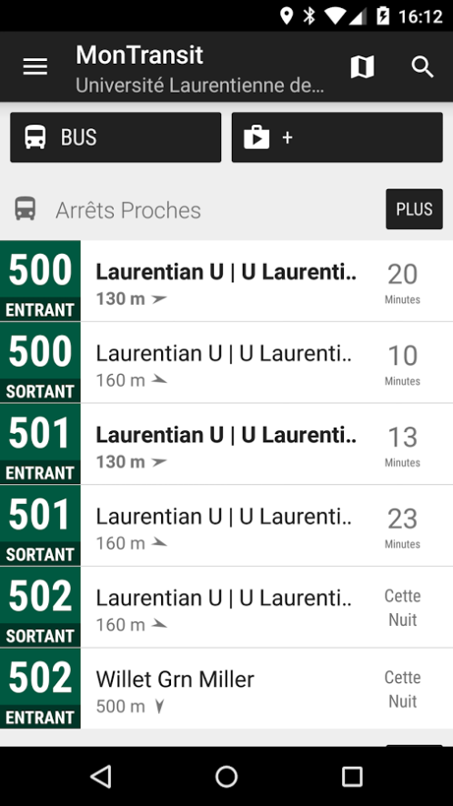 - vous pouvez entrer le numéro # ou le nom d'une ligne, le code # ou le nom d'un arrêt ou d'une station, les noms de rues ... en cliquant sur l'icône recherche