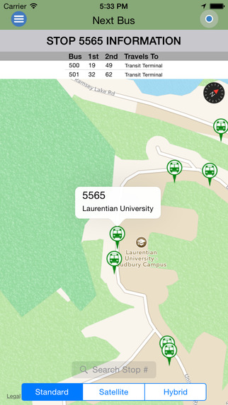This app was developed for Sudbury Transit in Sudbury, Ontario. The main purpose of this app is to tell the user how much time is left until the bus is coming at any specified stop by simply typing in the stop number into the search bar or pressing on the stop manually. Other features are included.