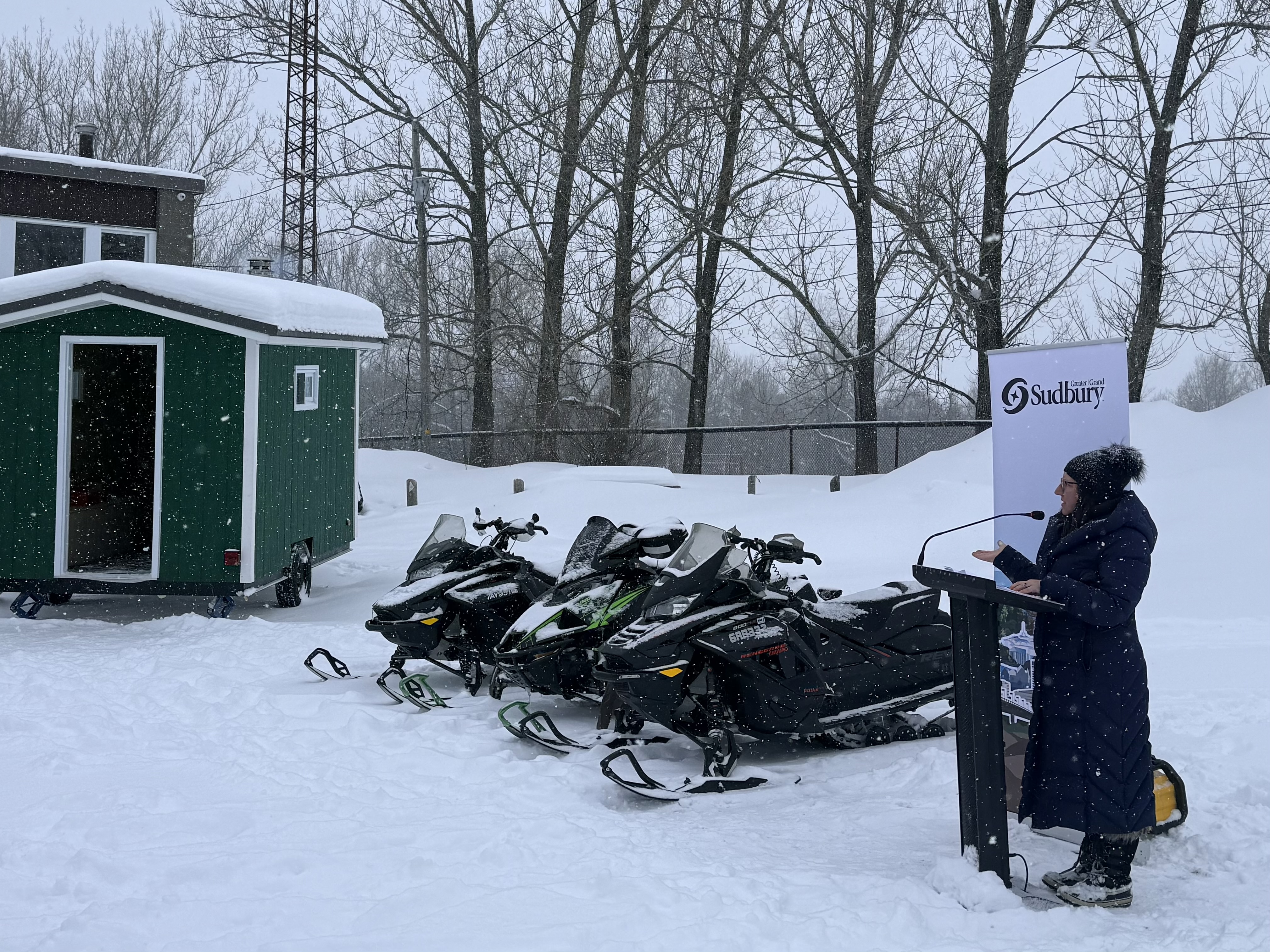 Ce matin, dans le cadre d’une activité spéciale tenue par le Sudbury Trail Plan à Garson, la Ville du Grand Sudbury a célébré le dévoilement de plusieurs améliorations apportées au réseau de sentiers de motoneige du district de Sudbury. Financées par un don de 125 000 $ de la Ville du Grand Sudbury, ces améliorations, y compris des cabanes pour se réchauffer comme celle présentée à l’occasion du dévoilement, permettront aux motoneigistes de passer plus de temps en toute sécurité dans le Grand Sudbury et aideront la communauté à profiter de cette énorme source d’activité touristique et économique.