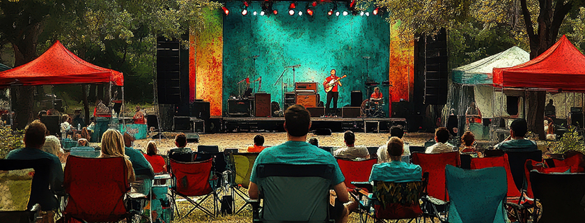 Tentes, scènes, gradins ou écrans