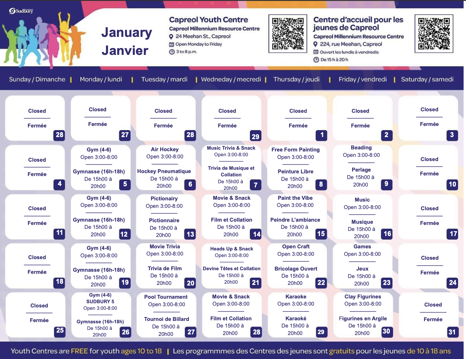 Le centre pour les jeunes sont ouverts en fonction du calendrier scolaire.