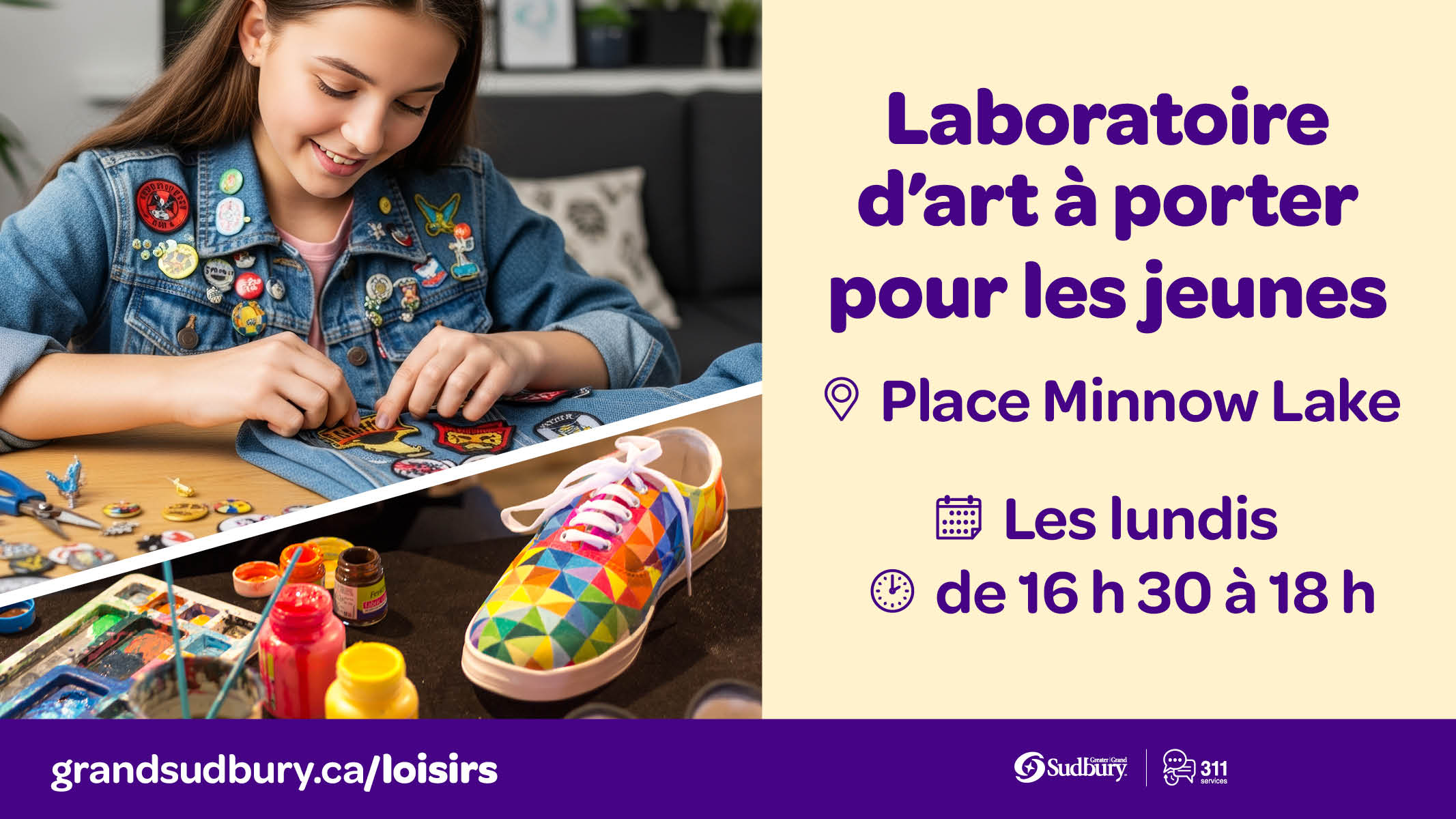 Transforme tes vêtements en des chefs-d’œuvre créatifs. Dans le cadre de ce cours pratique, sous la direction d’une artiste visuelle / éducatrice, les jeunes apprendront différentes techniques, comme la peinture sur tissus, la mosaïque et le surcyclage (aucune compétence à la couture n’est requise).