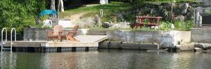 Voici le type de rive à éviter. Elle comprend des structures rigides. Il n’y a aucune zone tampon ni végétation sur la rive ou dans les environs. Et la propriété est presque complètement aménagée.
