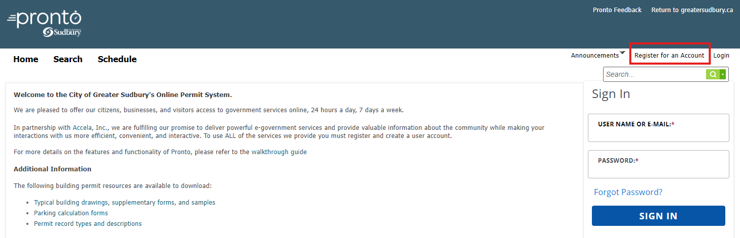 - Accédez à la page d'accueil du Pronto en utilisant la dernière version de Google Chrome, Microsoft Edge ou Firefox,