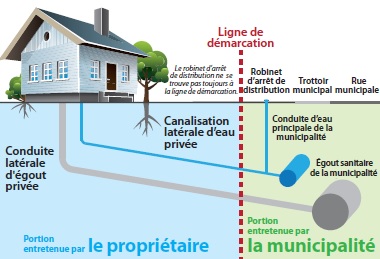Les propriétaires sont responsables de la maintenance de toutes les lignes de service privées situées à l'intérieur de la limite de la propriété, y compris :