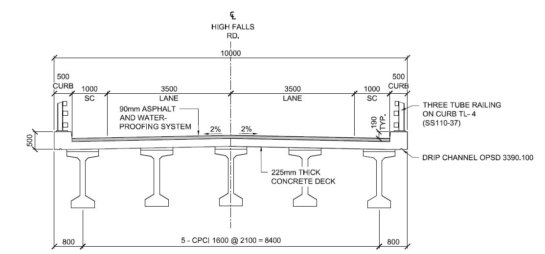 - Le remplacement du pont existant par un pont à poutres en béton préfabriqué.