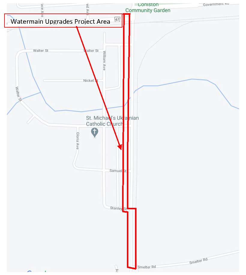 La Ville du Grand Sudbury exécutera des travaux d’amélioration de la conduite principale à Coniston sur l’avenue Edward, du chemin Smelter à la rue Stanley et le long de la ruelle qui va de l’avenue Edward à l’avenue William.
