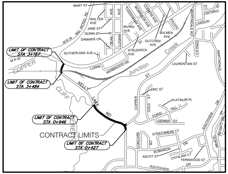 La Ville du Grand Sudbury exécutera des travaux de reconstruction et d’amélioration de l’infrastructure sur le chemin Kelly Lake, de la rue Lorne à la voie ferrée du Canadien Pacifique, et du pont du ruisseau Junction à la rue Copper.