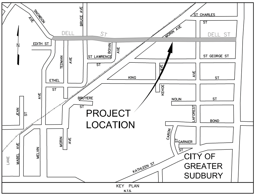 La Ville du Grand Sudbury exécutera des travaux de reconstruction sur la rue Dell, de l’avenue Snowdon à l’avenue Notre Dame.