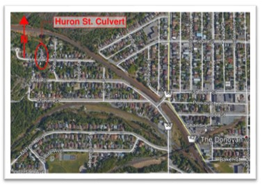 • Enlèvement de la section nord du ponceau existant de la rue Huron, d’une longueur d’environ 46 m.