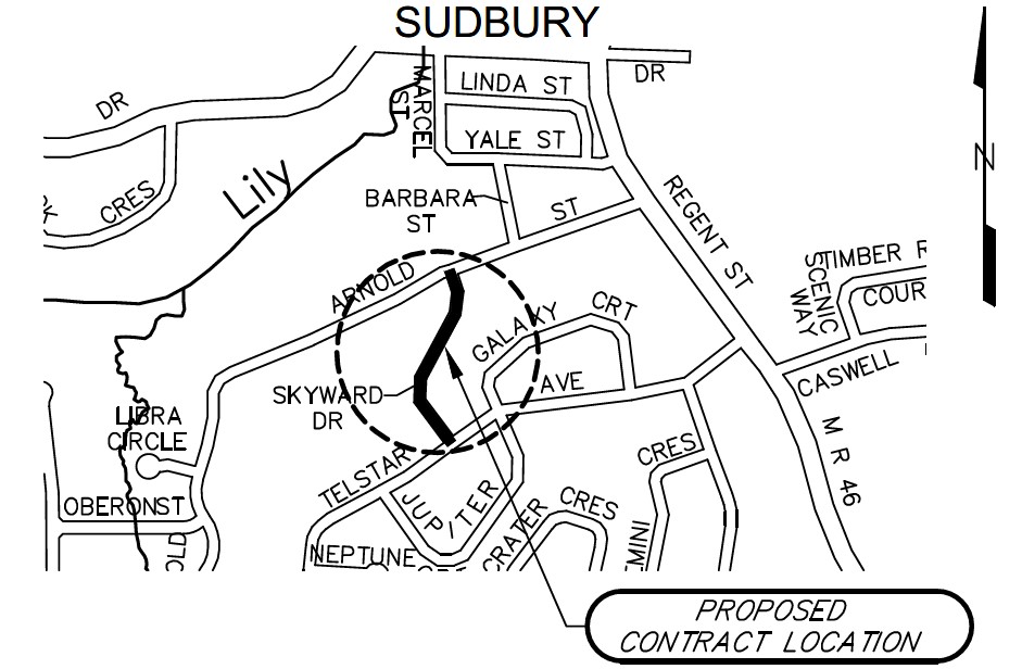La Ville du Grand Sudbury mènera des travaux d’amélioration de la route de la promenade Skyward, entre la rue Arnold et l’avenue Telstar, à Sudbury.