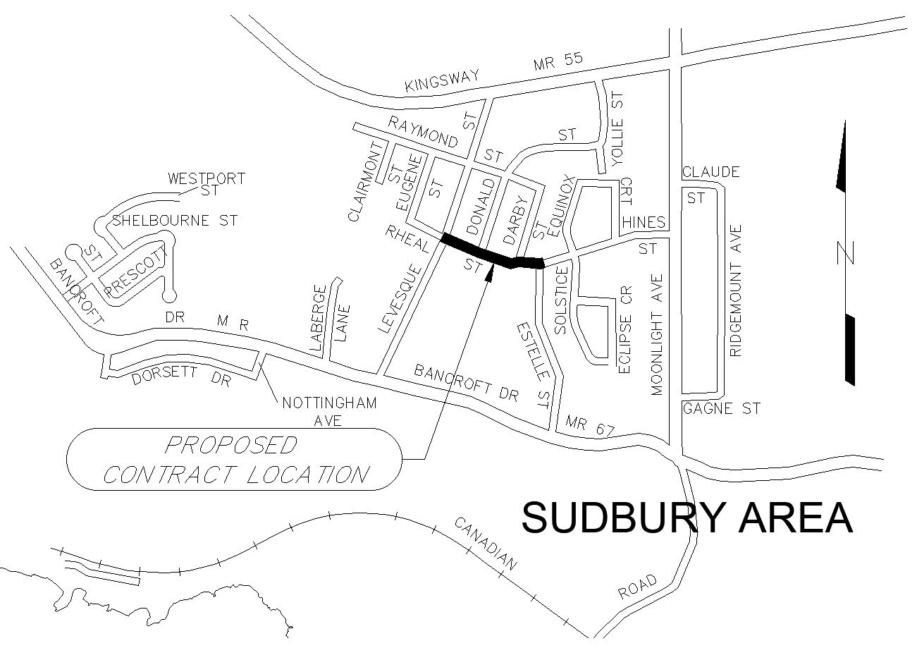 à la rue Rhéal de Sudbury, entre la rue Lévesque et la rue Estelle.