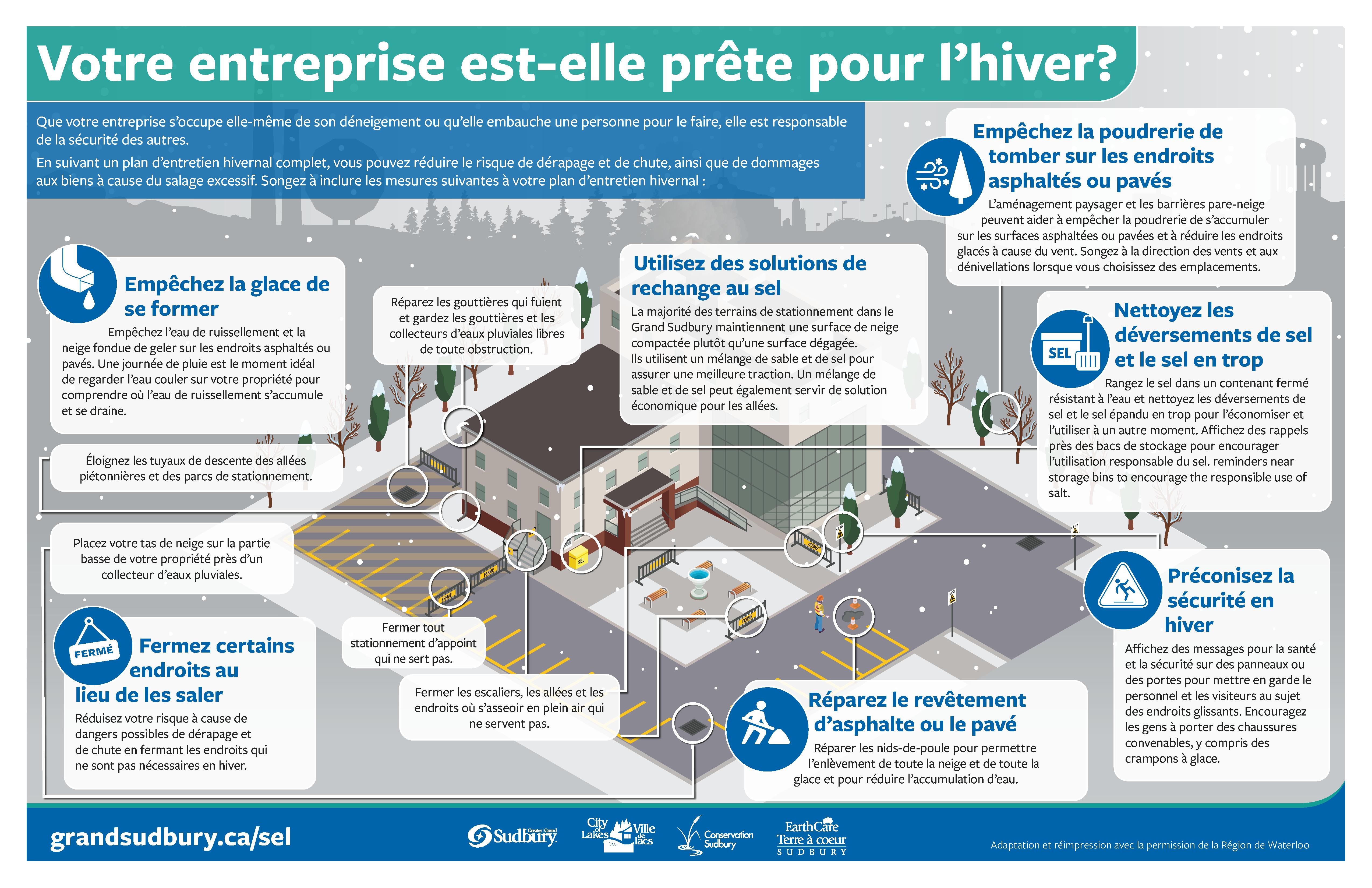Pour exploiter une entreprise dans le Nord, il faut s’occuper des allées piétonnières et des parcs de stationnement enneigés et glacés. Votre entreprise, ou un service embauché pourrait s’occuper de votre déneigement, pourrait utiliser du sel comme premier choix pour assurer la sécurité de vos travailleurs et clients. Toute fois, le salage pourrait ne pas s’avérer le meilleur choix et le salage excessif entraîne divers problèmes!